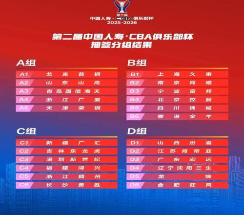 第二届中国人寿CBA俱乐部杯抽签分组结果出炉