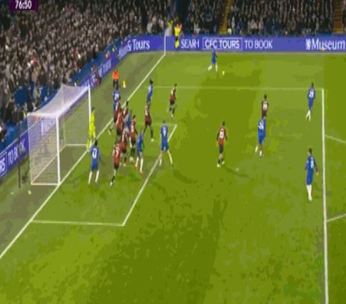 第42分钟,布鲁克斯右路下底传中,切尔西禁区内风声鹤唳将球解围。