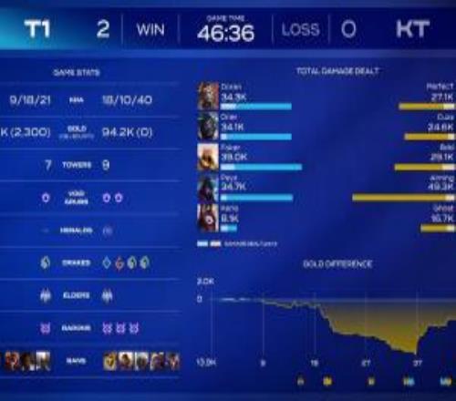 这就是韧性啊赛后数据面板显示T1落后1.4w经济差翻盘比赛! -
